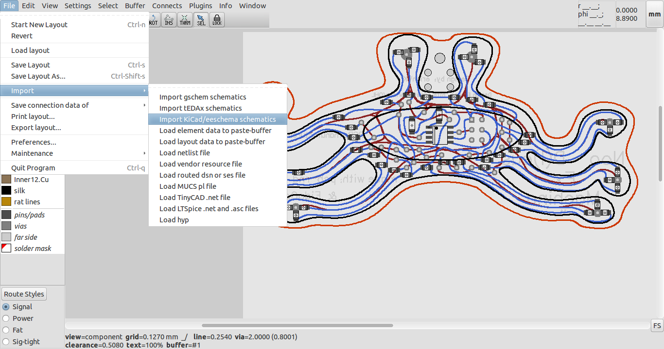 And after using the file:import menu item in pcb-rnd: