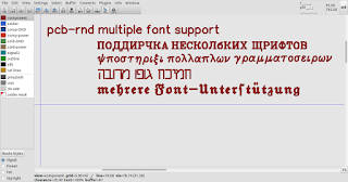 Fonts can also be specified for element text attributes, i.e. the RefDes, since element text attributes in the lihata file now include a font ID, allowing a RefDes to have something other than the default font used for rendering: